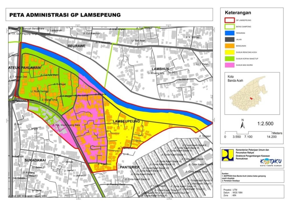 Dengan Rincian, Gampong Lamseupeung terdiri dan 3 Dusun, yaitu: